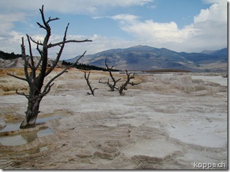 Richtung Norden liegen die Mammoth Hot Springs, die sich durch ihre Travertinterrassen von den anderen Gebieten im Park unterscheiden.